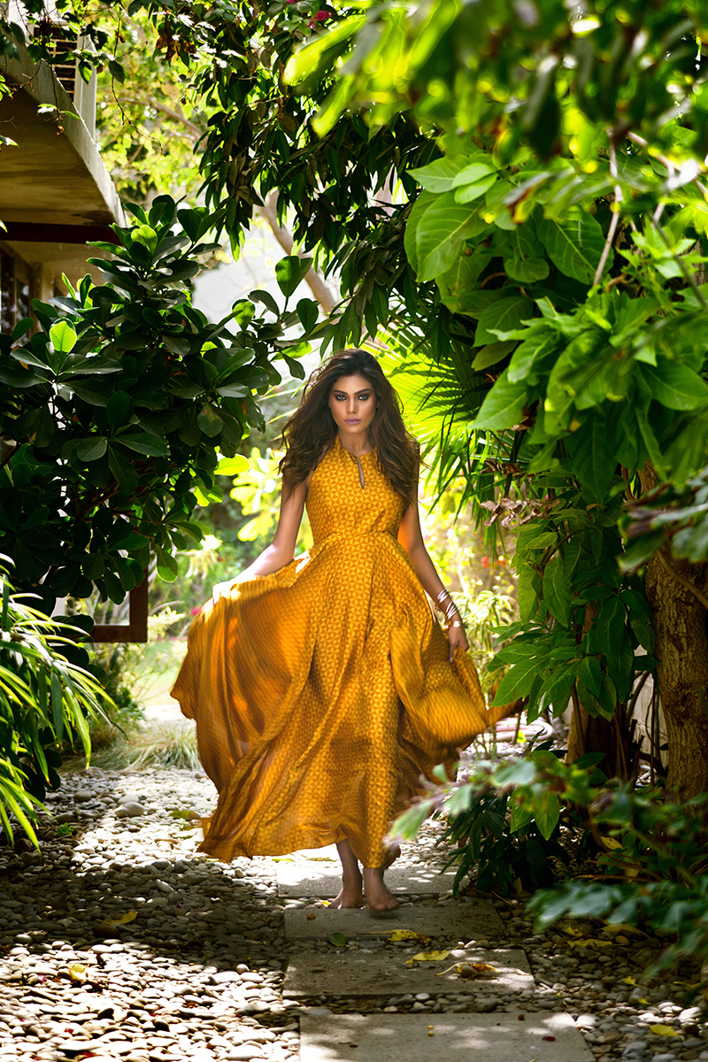 A straight long asymmetrical dress featuring our hand block print limited edition fabric.