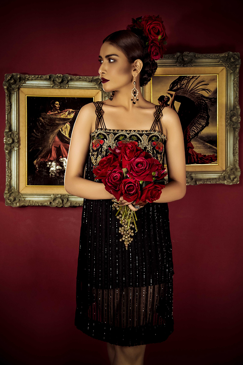 A straight long shirt featuring heavy front embroidery and elegant resham thread work detailing along the neckline, paired with tailored culottes. Dupatta can be ordered separately with sequin sprinkle and finishing. Sleeves can be added on request.