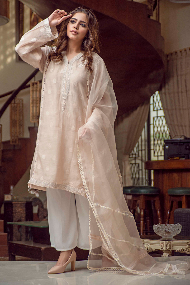 Featuring embroidery on shoulder, neckline, sleeve and shirt hemline front and back. Trouser and dupatta can be added.